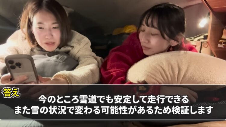 A1:今回は福島の雪道を約300m走行しましたが、5cm~10cmの浅めの雪の場合は安定して走行することができました。積雪の状況で変わる可能性があるのでまた検証予定です。