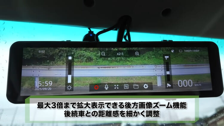 しかし、本製品ではズーム機能を利用することで、この問題を解消できます。森さんも、2.5倍から3倍に調整することで、サイドミラーで見る感覚に近くなり、車線変更や合流が安心して行えるようになったと語っています。