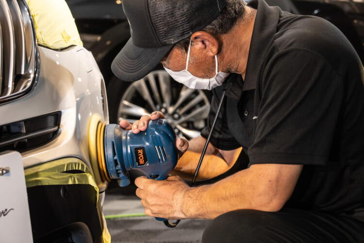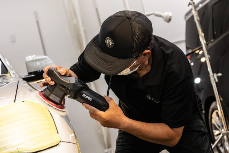 さらに翌営業日には専用の研磨ブースに車を移動し、自然光では判別できないキズやシミを特殊な照明のもとで見逃さず、段階的に磨いていきます