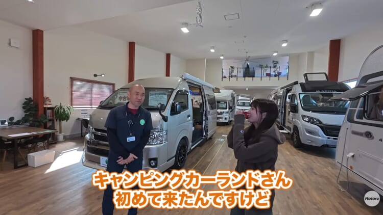 次に向かったのは、愛知県日進市に位置する「キャンピングカーランド名古屋店」です。この店舗は、雨の日や気温の厳しい日でもゆっくりと実車を確認できる広大な屋内展示場を備えているのが強みです。