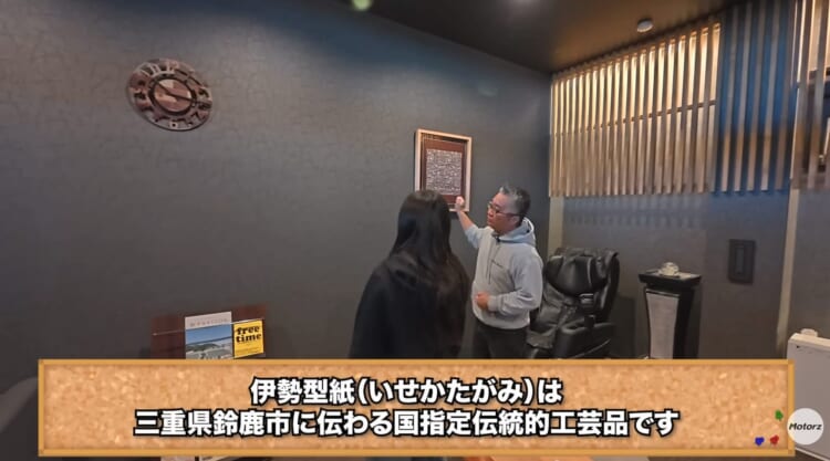 代表の百田(ももた)氏がこだわったのは、単なる展示場ではなく地元への愛が詰まった居心地の良い空間作りです。VIPルームには三重の伝統工芸品である「伊勢形紙(いせかたがみ)」や「鈴鹿墨(すずかずみ)」が贅沢にあしらわれ、職人の技が光る一点ものの装飾が訪れる人を迎えます。