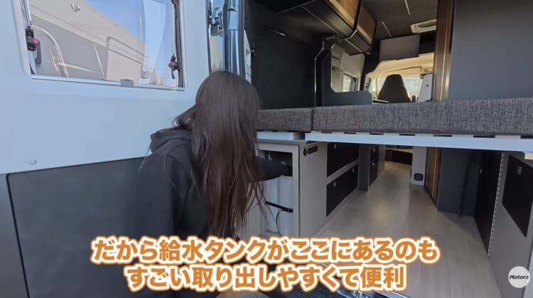 キッチンには3口コンロやおしゃれな水道が備わり、本格的な料理も楽しめそうです。さらにマルチルームはシャワーとトイレが分かれているため、実質的にバス・トイレ別の快適さを実現しています。リアにある広々とした2段ベッドや、子供が入って遊べるほど巨大な外部収納庫など、ファミリーでの長期旅行やアウトドアアクティビティを存分に楽しみたい方にはたまらない仕様となっています。