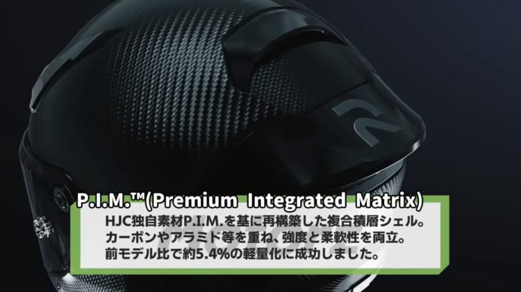 カーボン・グラスファイバー・アラミド繊維を幾層にも重ねた独自シェル「P.I.M.」を採用することで、従来モデルから約5%の軽量化を達成しています。実際に手にすると、その軽さに思わず驚くはず。