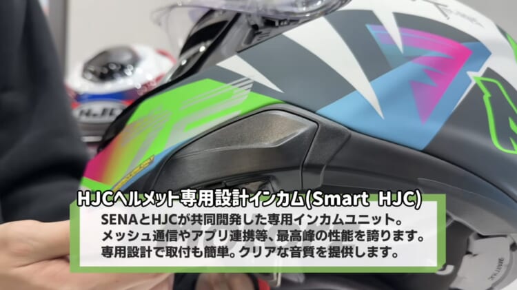 帽体もコンパクトになり、インナーバイザー付きとは思えないスッキリしたシルエットに。専用インカム「SMART HJC」を装着しても見た目を崩さず、風切り音を抑えたクリアな通話が楽しめます。