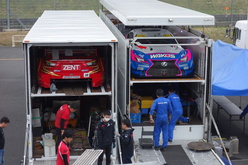 まずは、おなじみのトランポでサーキット内へ荷物を搬入します。
